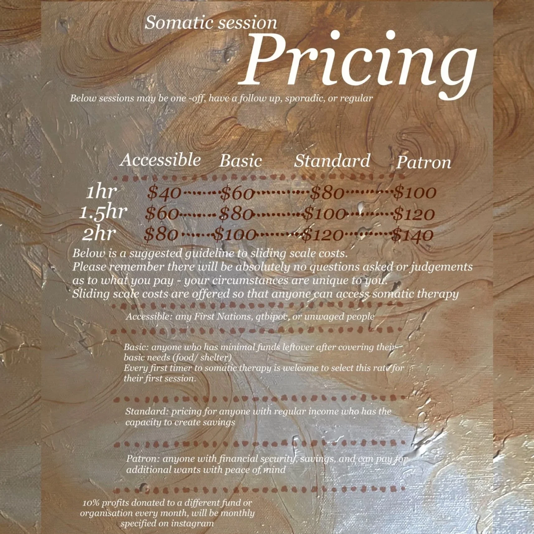 A session with me is client-led and attuned to your body’s pace. We begin by arriving together—often through grounding or a body scan. From there, we follow what arises: that may be movement, sensation, breath, touch, guided inquiry, or creative exploration. I may gently offer prompts, but I hold the space for you to follow your own body's wisdom. There’s no way to "do it right"—this is a space where everything is welcome, and we follow your learning edge with care and curiosity.